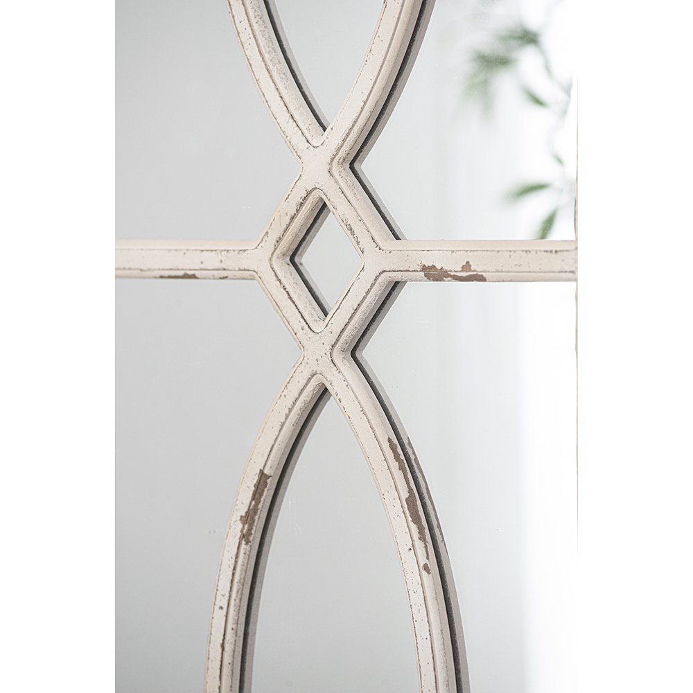 This set of two carved accent mirrors is sure to capture the gaze of your guests with their intricate curved motifs and distressed white finish. Whether they are displayed as a pairing or separated, the unmatched blend of modern and rustic charms will embellish the decor in your entryway, living room, foyer, or bedroom.