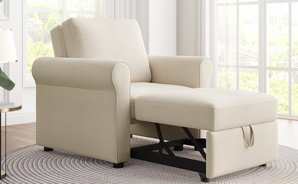 > 3-in-1 Sofa Bed Chair, Convertible Sleeper Chair Bed,Adjust Backrest Into a Sofa,Lounger Chair,Single Bed,Modern Chair Bed Sleeper for Adults,Beige(Ol