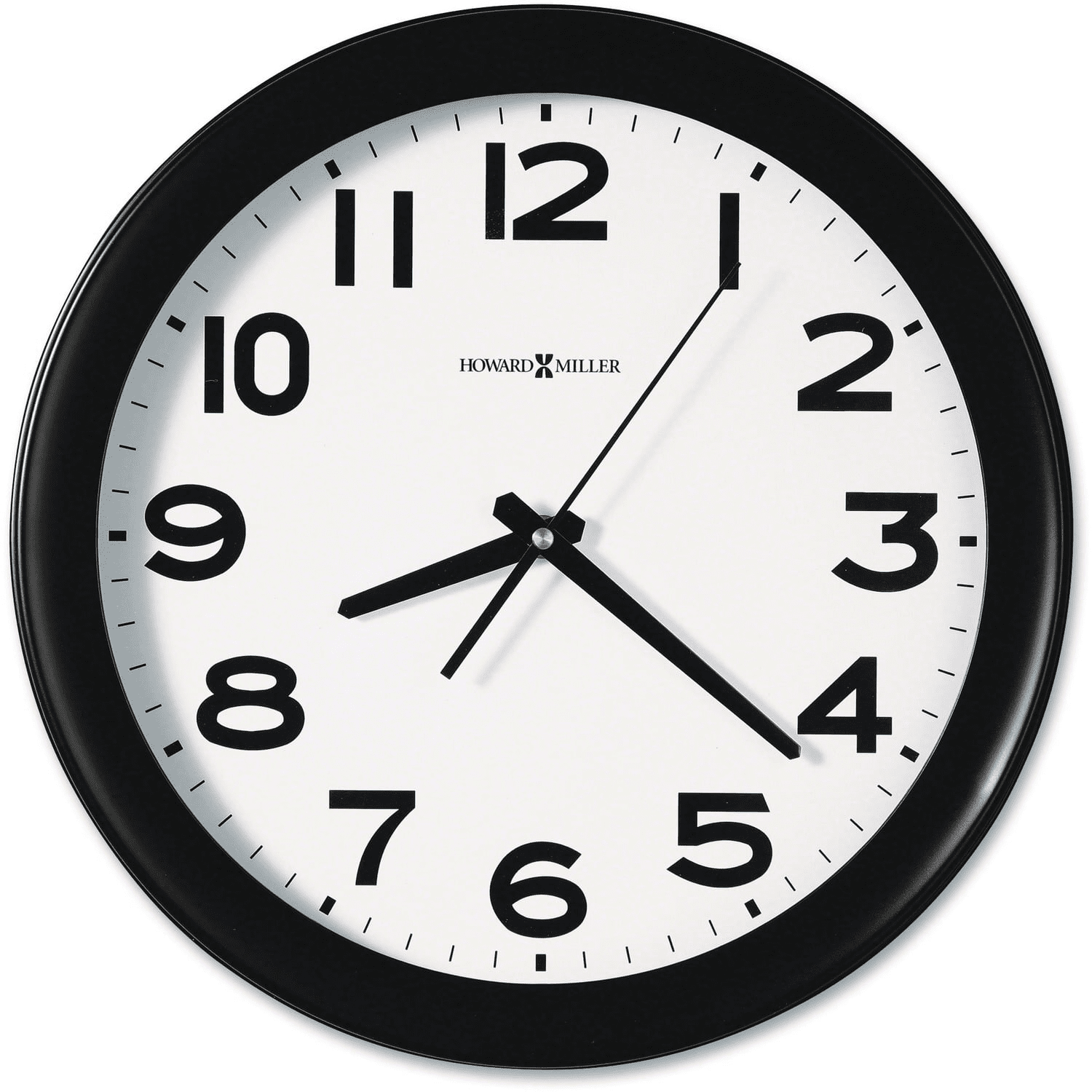 Howard miller kenwick wall clock in black color has bold hour and min hands that stand out against white dial face. Clock has an overall diameter of 13 1/2" and supports quartz movement to ensure accurate results.