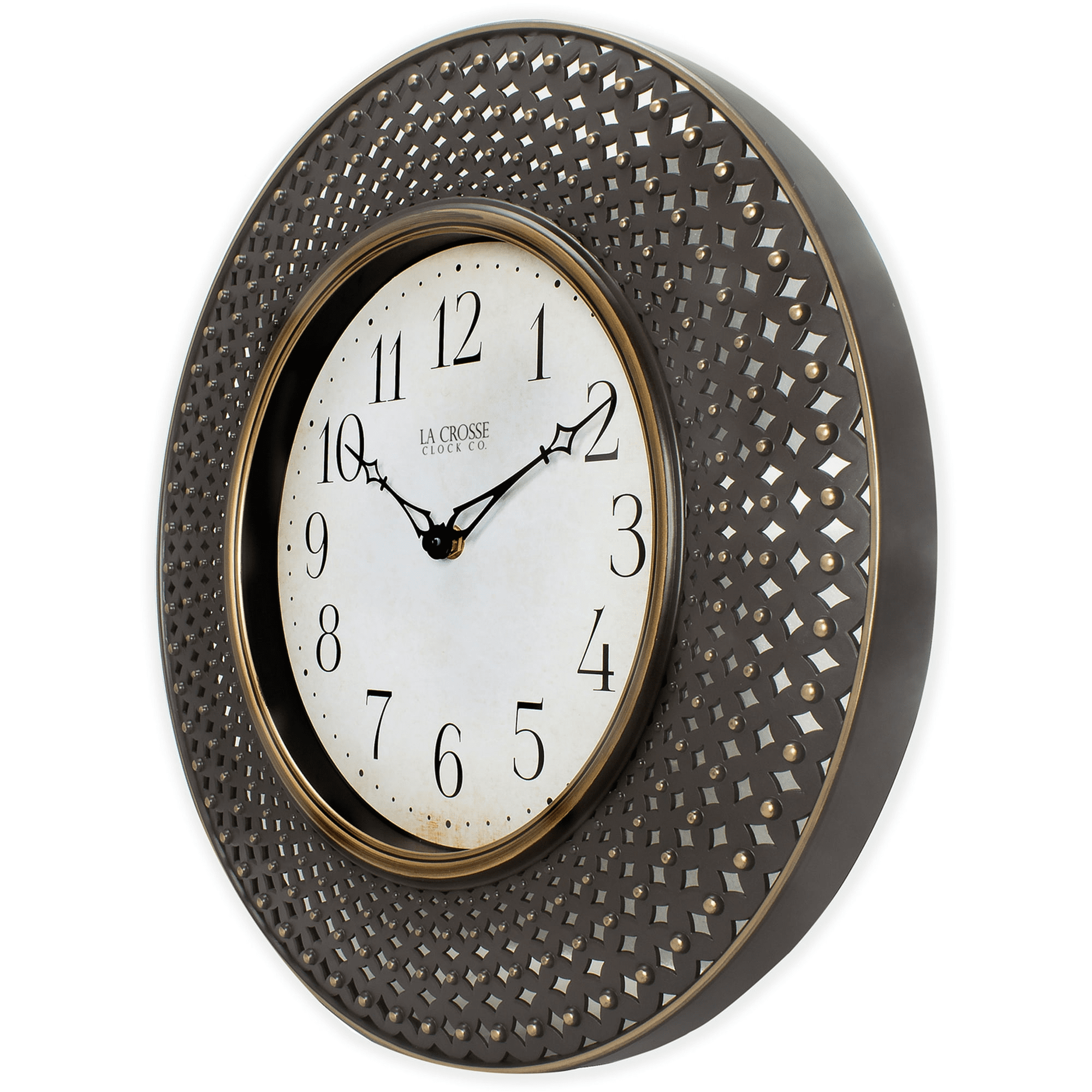 La crosse clock 16 inch antiqued brown lattice quartz analog wall clock, bbb86507