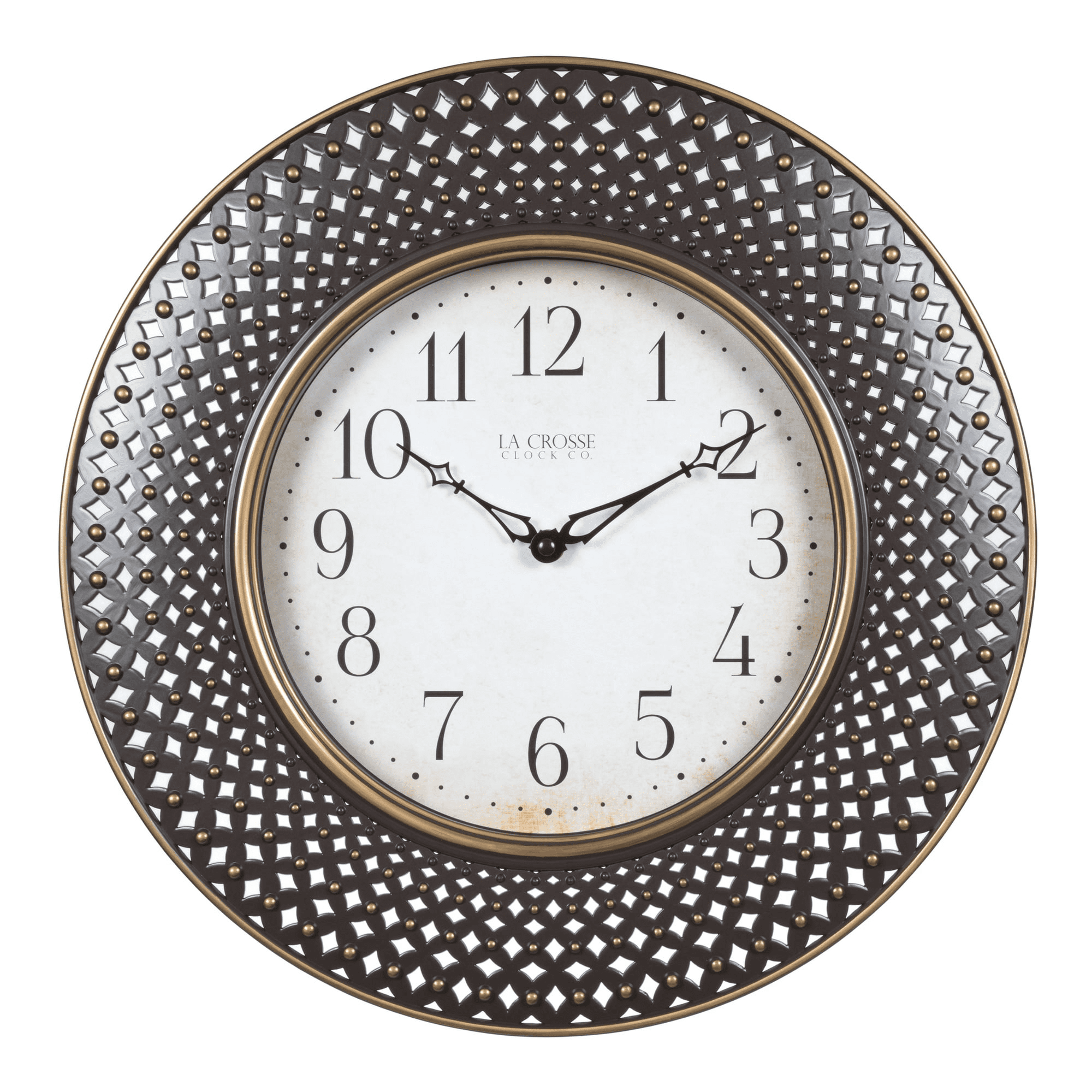 La Crosse Clock 16 Inch Antiqued Brown Lattice Quartz Analog Wall Clock, BBB86507 La Crosse Clock 16 Inch Antiqued Brown Lattice Quartz Analog Wall Clock, BBB86507